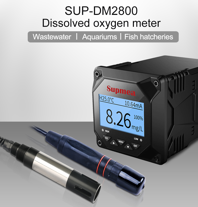 Applications: SUP-DM2800 Membrane type Dissolved oxygen is the measure of oxygen dissolved in an aqueous solution. Polarographic measurement principle, the dissolution value depends on the temperature of the aqueous solution, pressure and salinity in solution. The meter uses a liquid crystal display for measuring and displaying DO and medium temperature values, with analog and digital signal outputs and control functions.